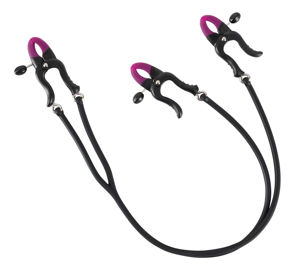 Зажимы на соски и клитор Silicone Nipple Clit Clamps. Соединяющие части эластичные. Длина зажимов - 6 см.