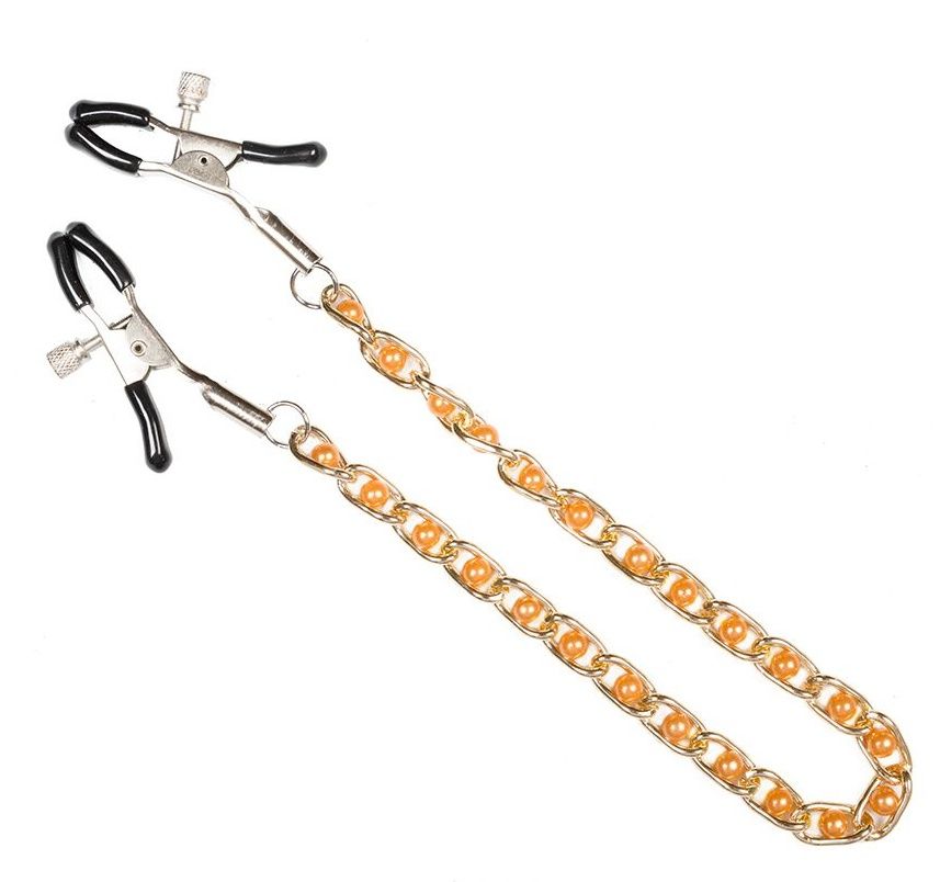 Зажимы для сосков на золотистой цепочке с бусинками Пикантные штучки DPNT002-4