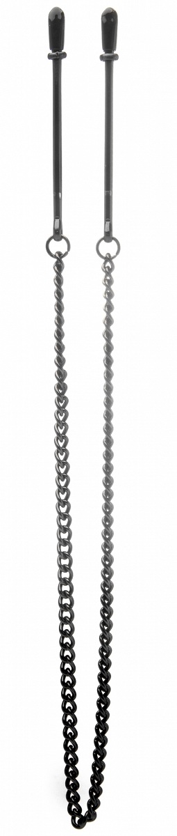 Металлические зажимы для сосков с резиновым покрытием. С регулируемой силой сжатия. Связаны между собой металлической цепочкой. Длина цепочки - 35,5 см.