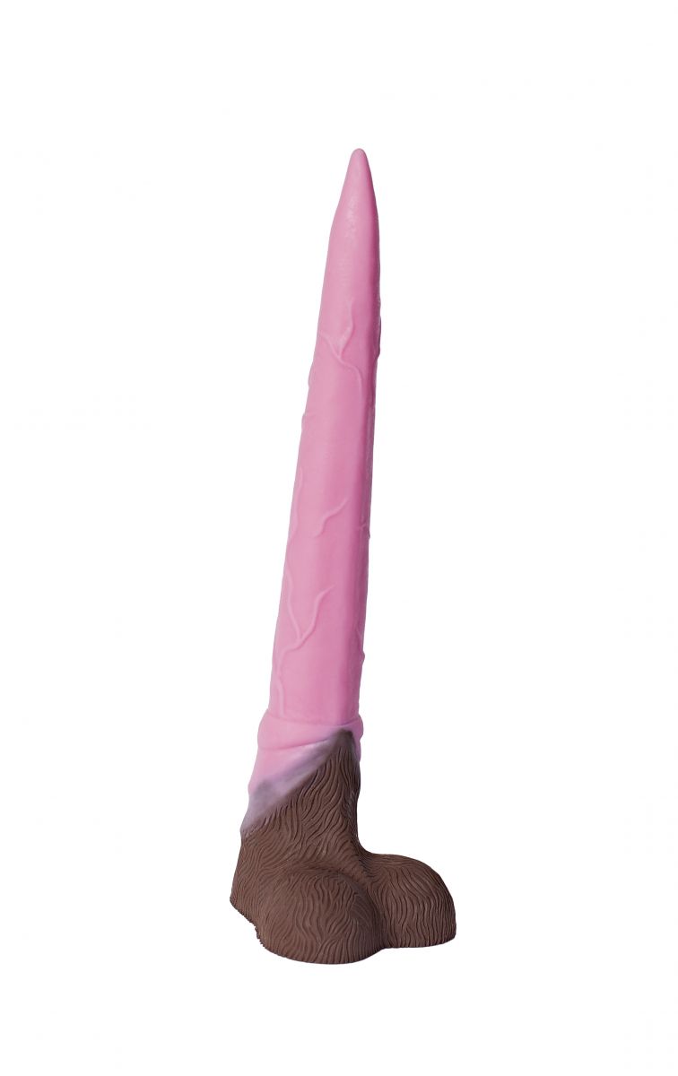 Эта длинная розовая секс-игрушка от Erasexa – первого и пока единственного российского производителя товаров интимного назначения для поклонников зооэротики – должна стать вашей, если в своих эротический фантазиях вами овладевает сохатое парнокопытное. Сделанный вручную из эластичного силикона стимулятор представляет собой точную копию фаллоса оленя. Фаллоимитатор покрыт маленькими венками и имеет ограничительное основание-мошонку с рисунком, напоминающим шерсть животного. Благодаря конусовидной форме «Олень» идеально подходит для анальной стимуляции. Рабочая длина - 25 см. Минимальный диаметр - 0,5 см.
