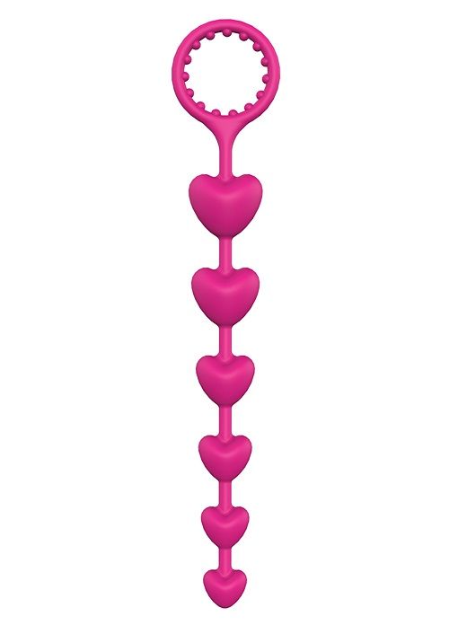 Розовая анальная цепочка с шариками-сердечками HEART BEADS. Отлично гнется.