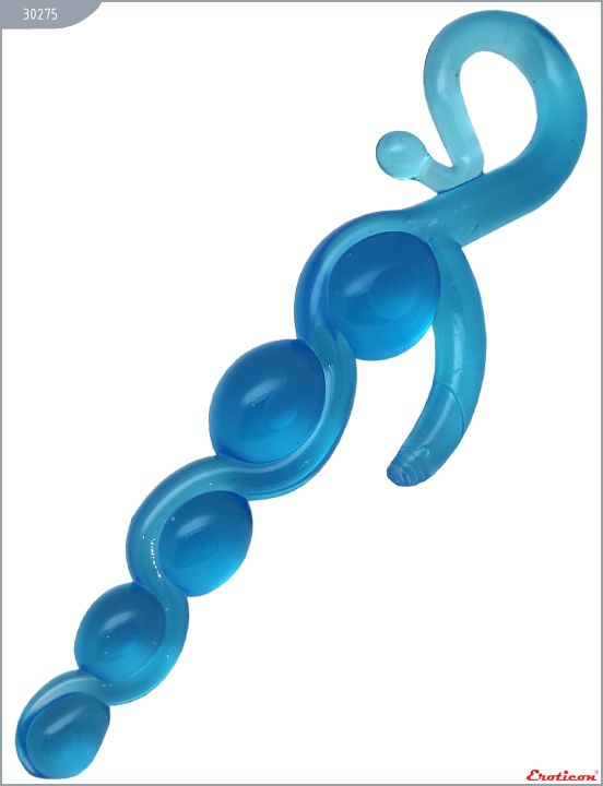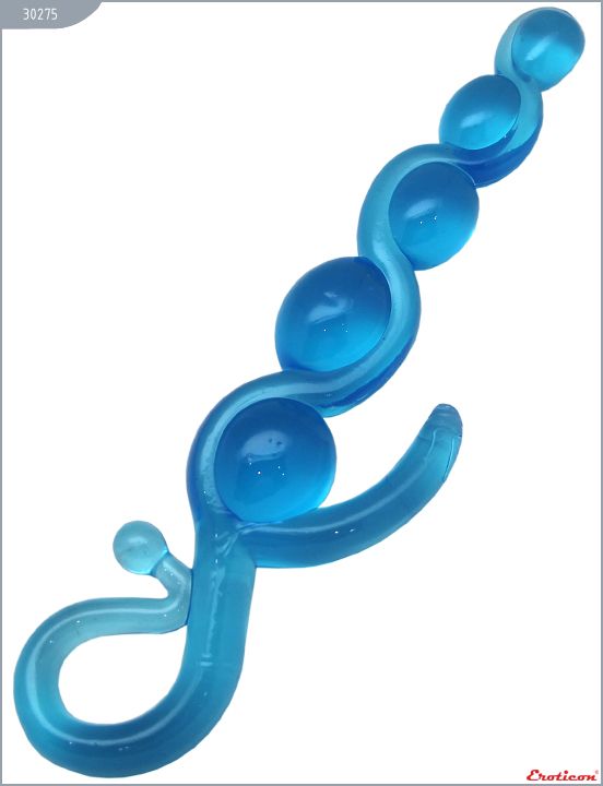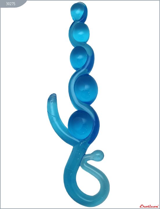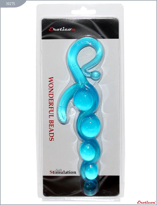 Анальная цепочка, гелевая, голубая, EROTICON WONDERFUL BEADS. Цепочка анальная необычной формы подарит невероятные ощущения! Цепочка состоит из пяти шариков разного диаметра. При помощи удобной загнутой ручки вы сможете контролировать глубину проникновения. Минимальный диаметр - 1,6 см.