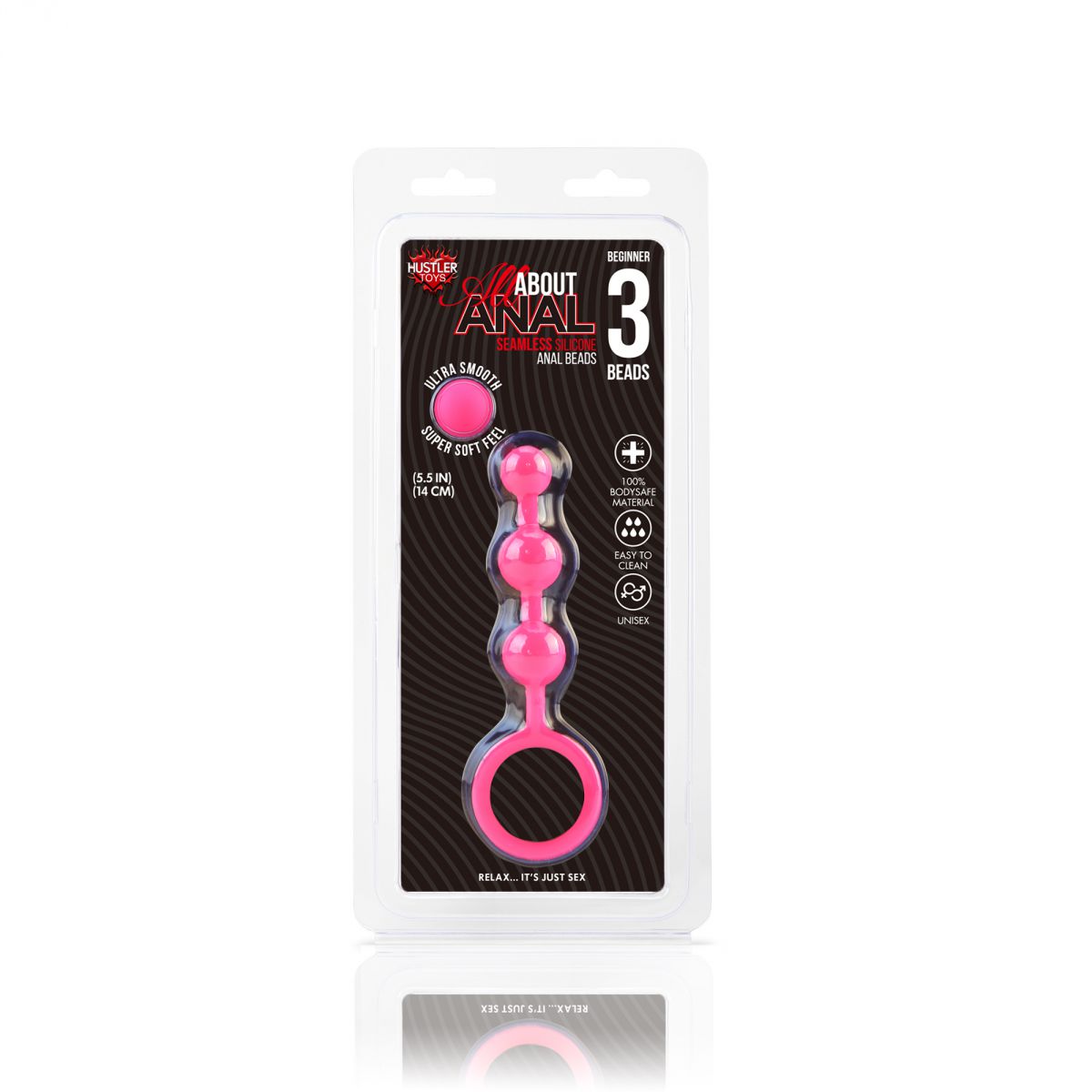 Самый лучший мягкий и упругий материал для анальных игрушек - силикон. HUSTLER превзошел сам себя - розовые ультрабархатистые и нежные силиконовые бусы, состоящих из 3 шариков. Материал быстро нагревается до температуры кожи человека, за изделием не требуется никого специального ухода. Минимальный диаметр - 1,5 см.