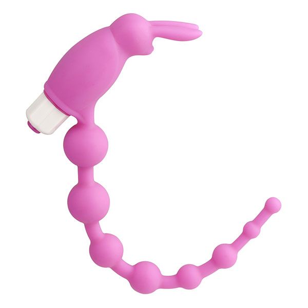 Розовая анальная цепочка с виброзайкой на кончике CHEERFUL BEAD RABBIT.