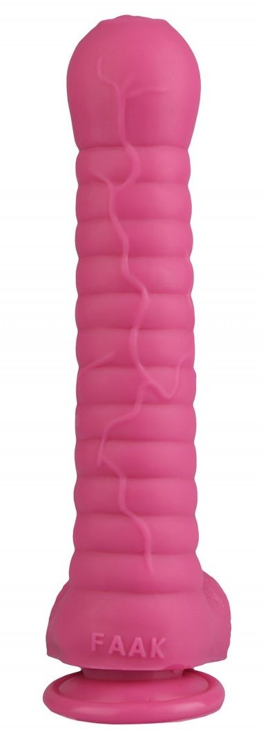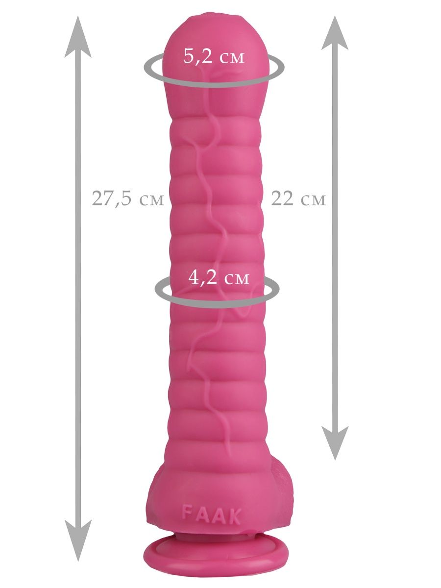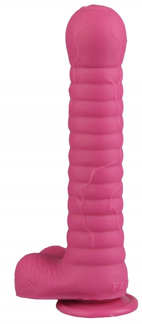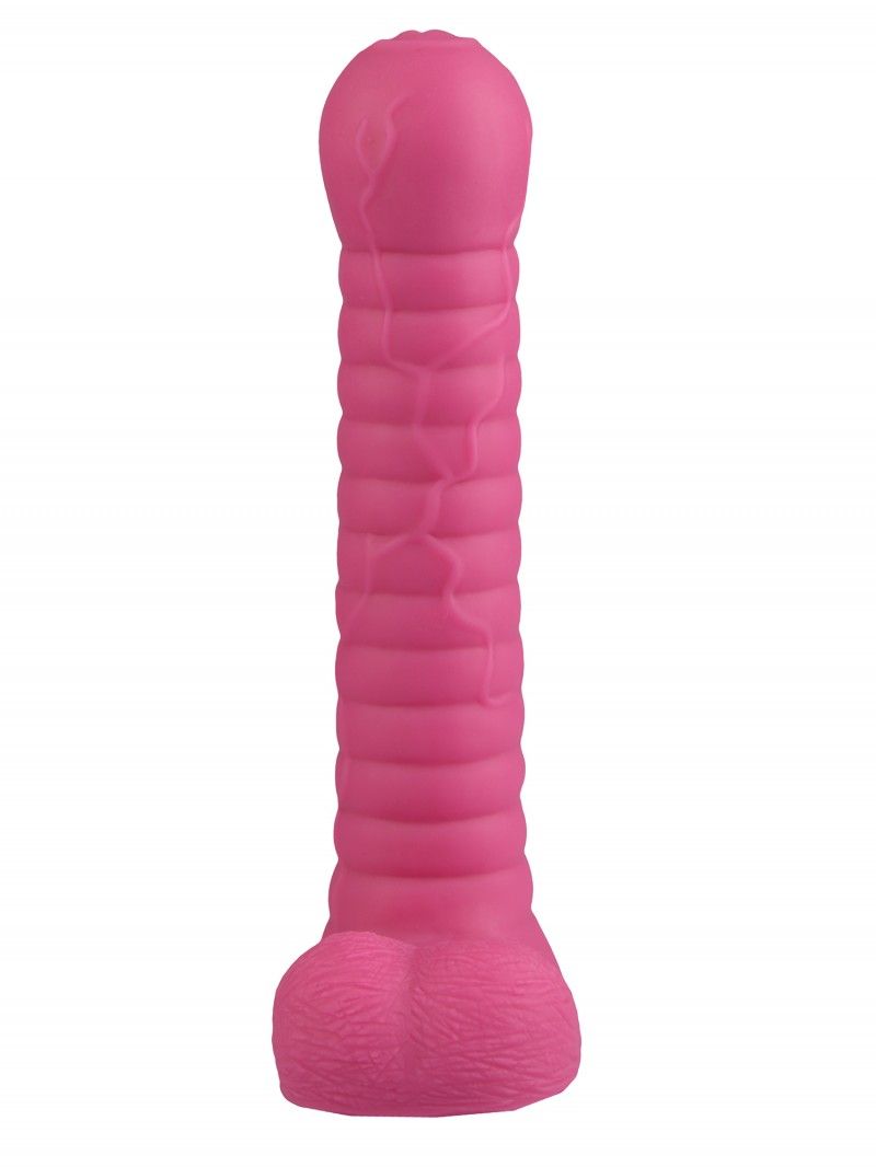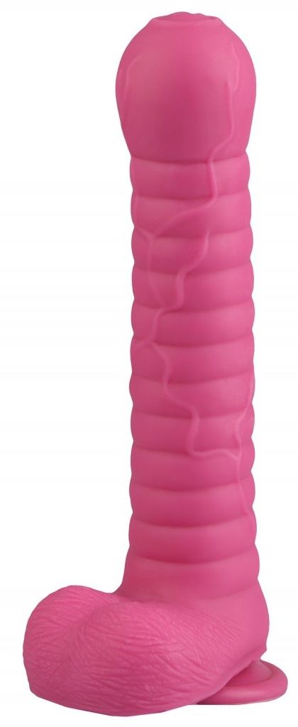 Розовый рельефный фаллоимитатор с мошонкой Сумерки богов 1016-90 BX DD (27,5 см)