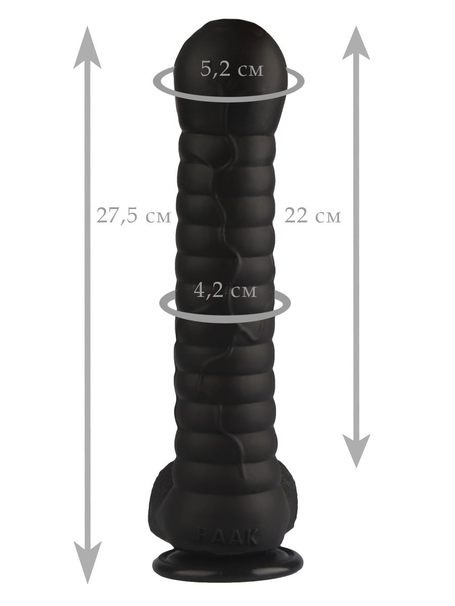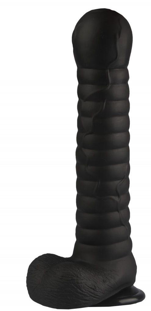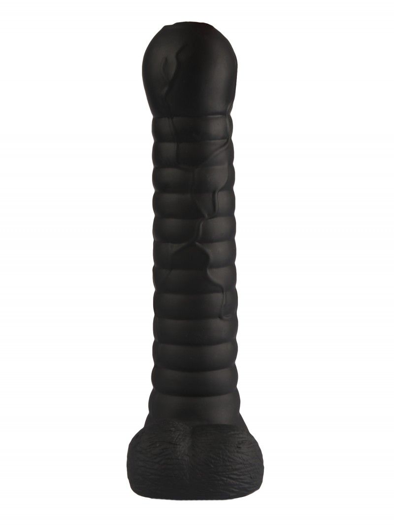 Чёрный рельефный фаллоимитатор с мошонкой Сумерки богов 1017-02 BX DD (27,5 см)