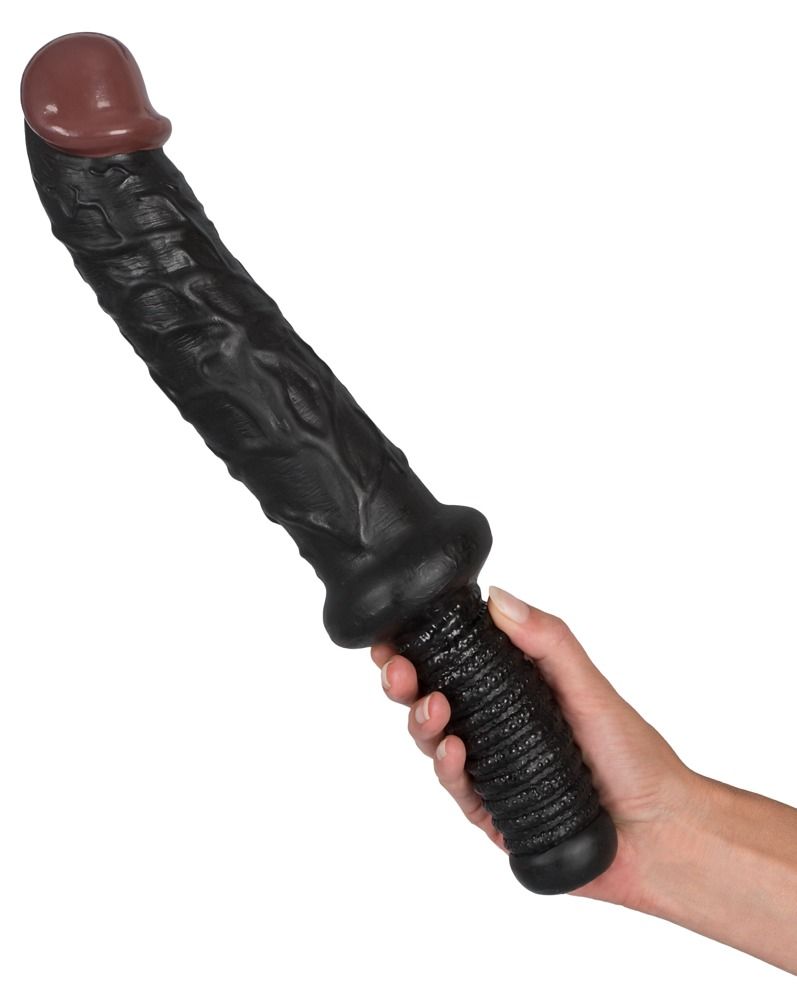 Фаллоимитатор-гигант с рукоятью Rogue. Темнокожий монстр для чувственных проникновений. Рабочая длина - 23 см.