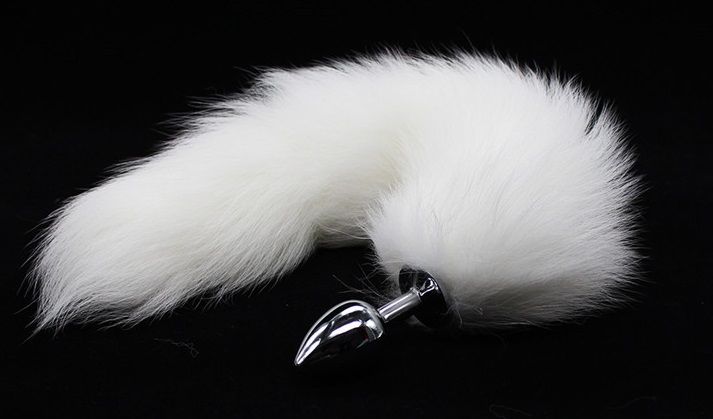 Металлическая анальная пробка с длинным белым хвостиком 4sexdreaM 47150