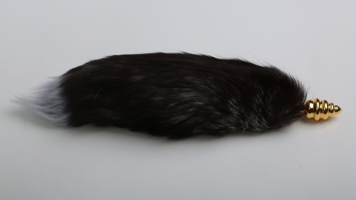 Металлическая рельефная анальная пробка с роскошным хвостиком из натурального меха. Рабочая длина - 6,5 см., диаметр - 2,6 см.