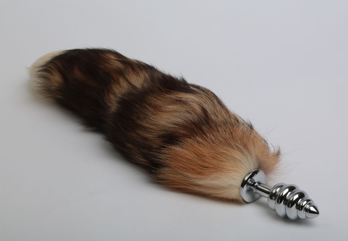 Металлическая рельефная анальная пробка с роскошным хвостиком из натурального меха. Рабочая длина - 6,5 см., диаметр - 2,6 см.