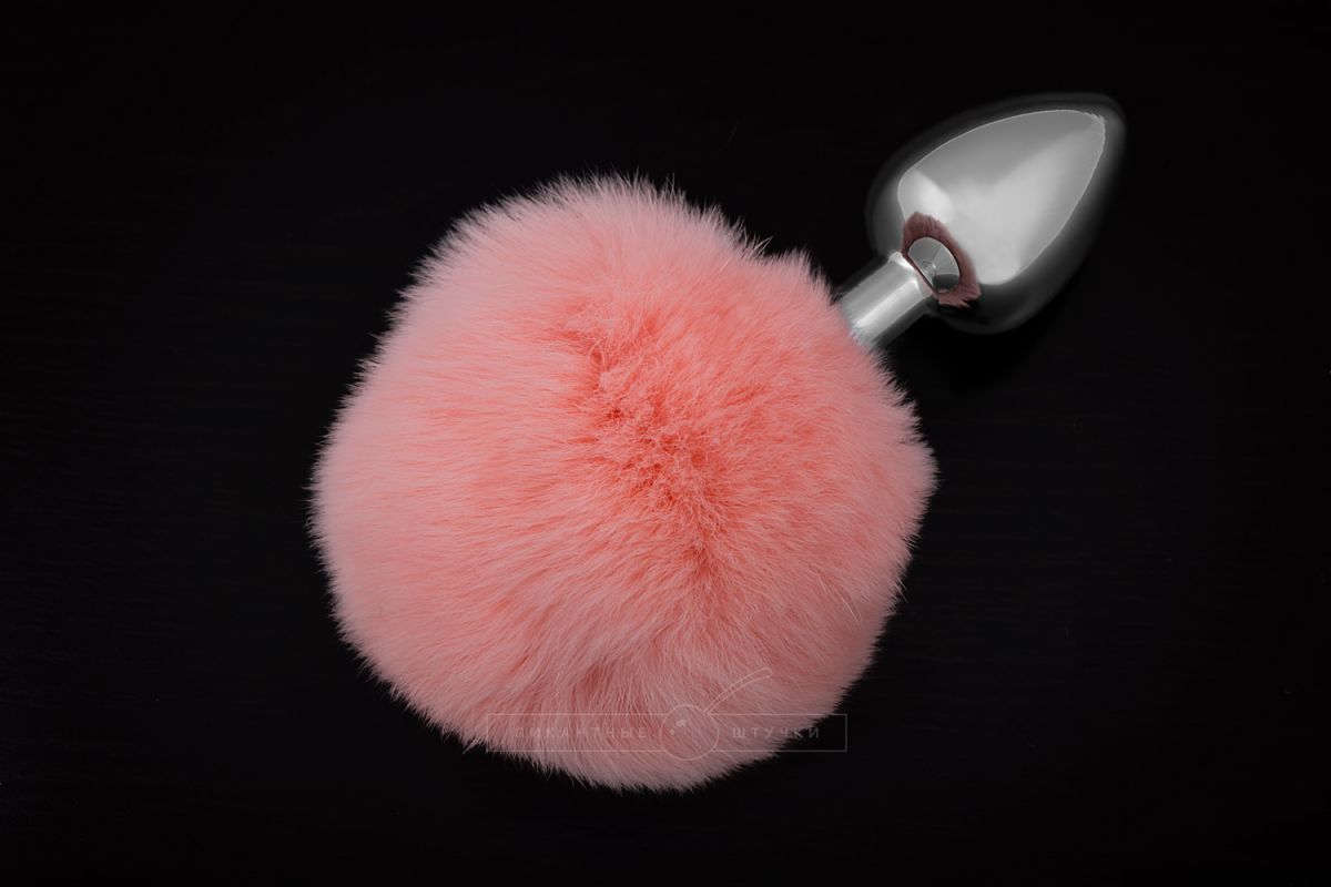 Маленькая серебристая пробка с пушистым розовым хвостиком