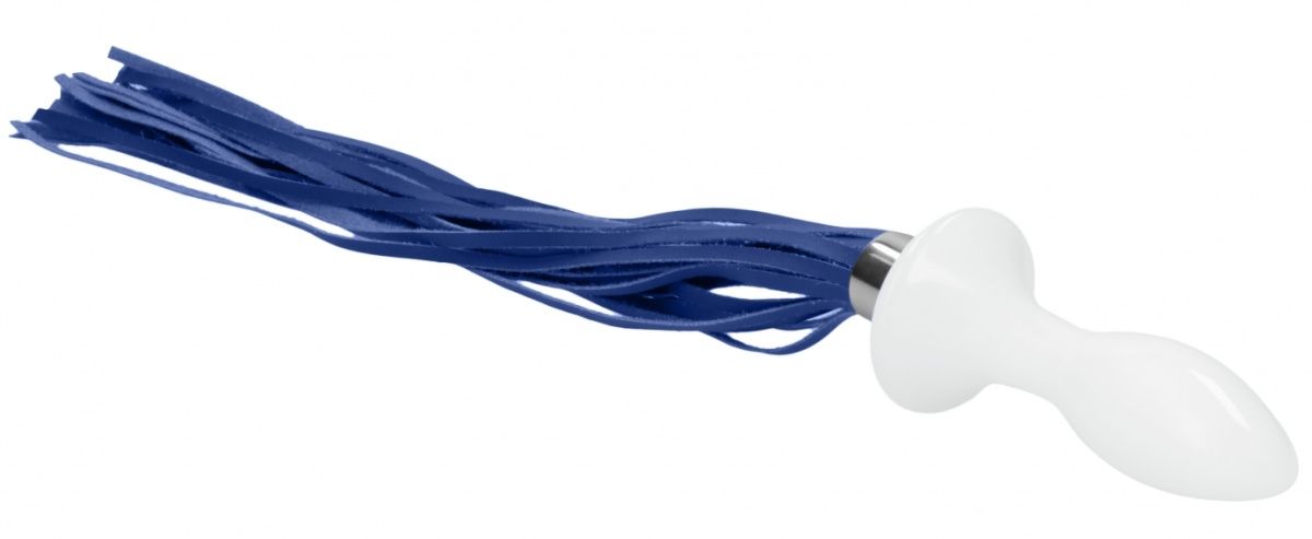 Белая анальная пробка с синими хвостами Shots Media BV Tail CHR020WHT