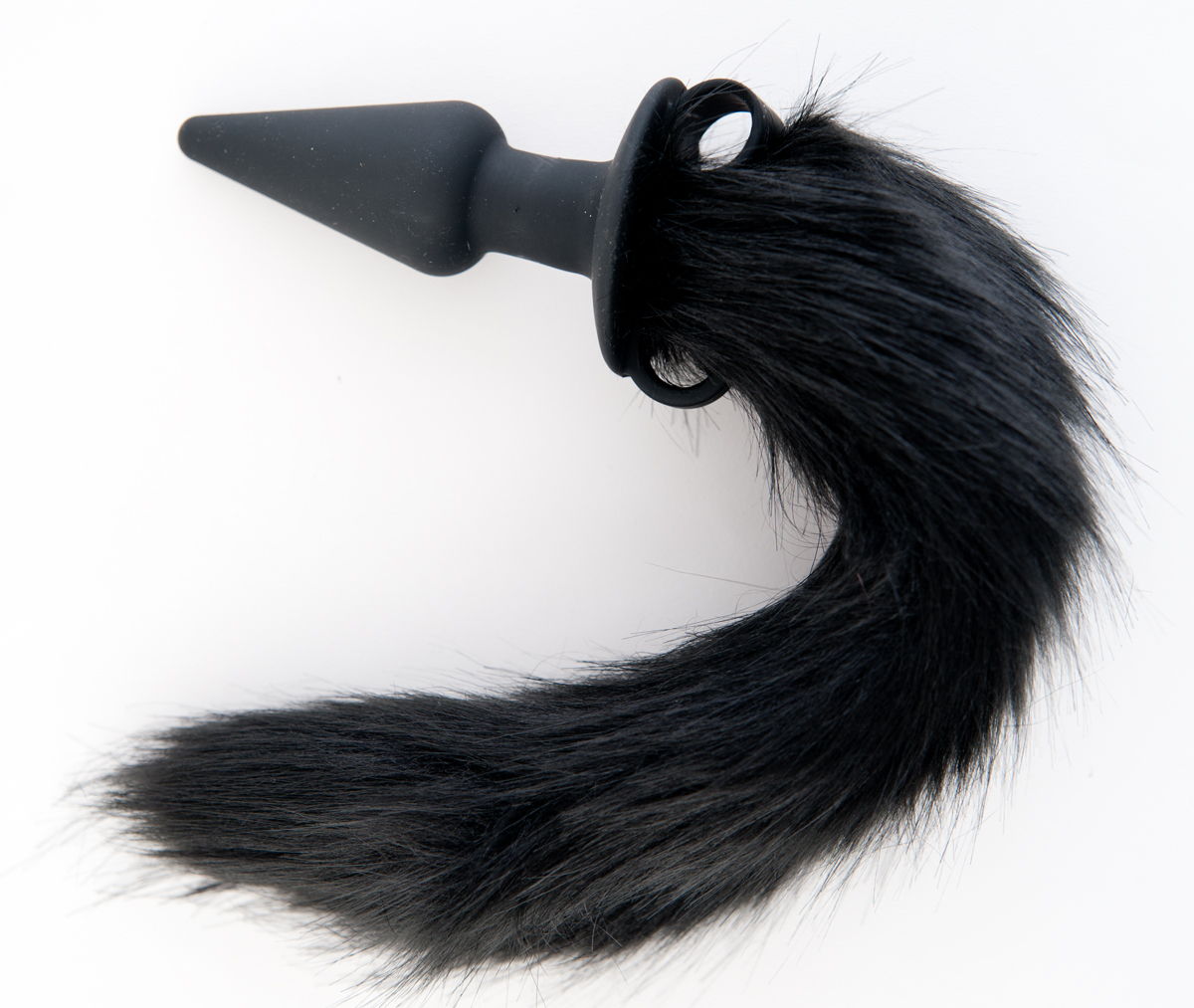 Втулка черная силиконовая с черным меховым хвостом. Рабочая длина - 10 см.