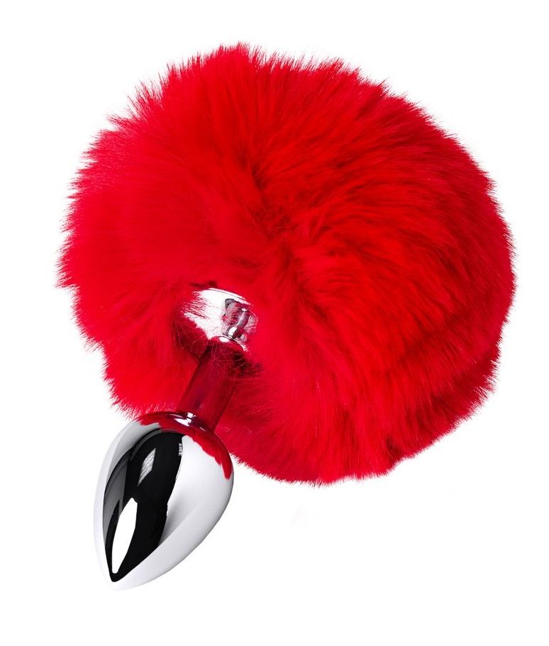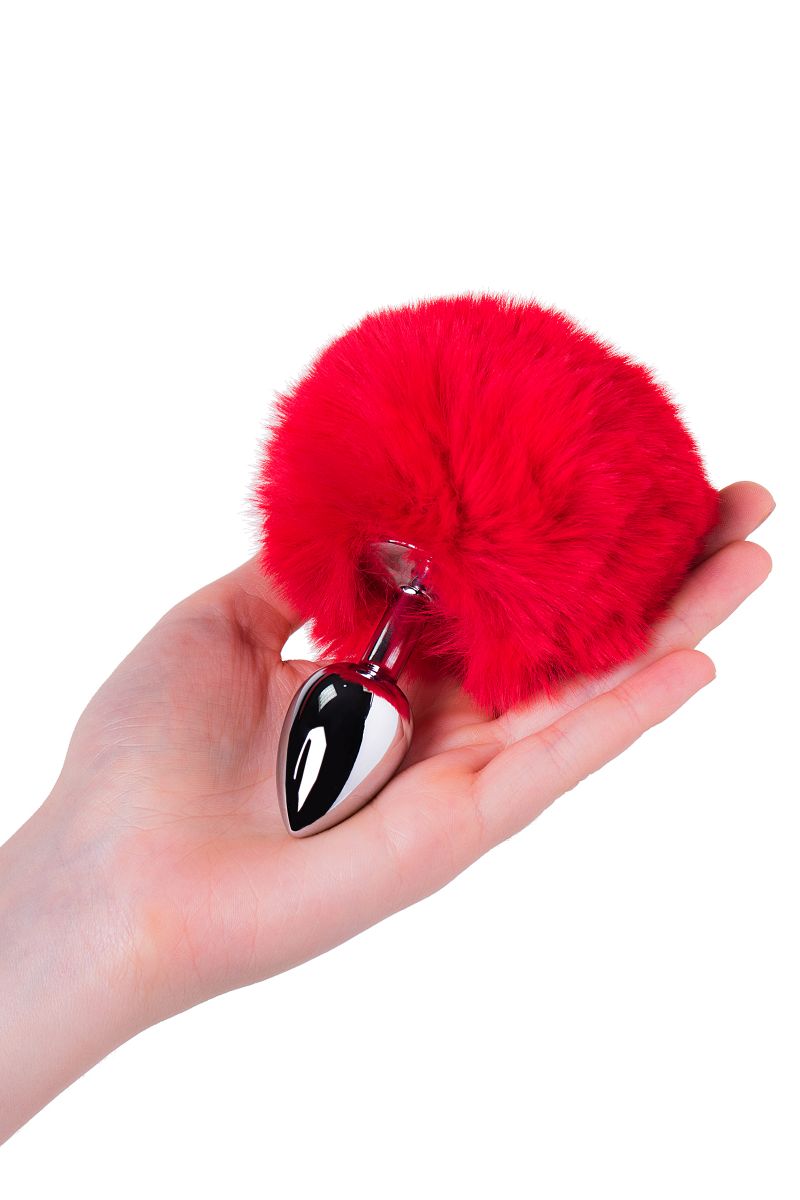 Серебристая анальная втулка с красным хвостиком ToyFa Metal 712025-9