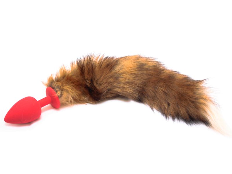 Красная силиконовая анальная пробка с рыжим хвостом размера M. Длина хвоста - 35 см. Вес - 80 гр.