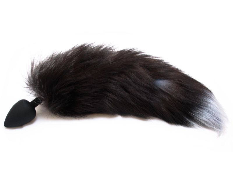 Чёрная силиконовая анальная пробка с чёрным хвостом Vandersex 125-2B (8 см, размер M)