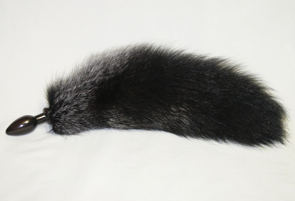 Анальная пробка черного цвета с черным лисьим хвостом Диаметр пробки - 3,2 см. Материалы: дерево, лак, натуральный мех.