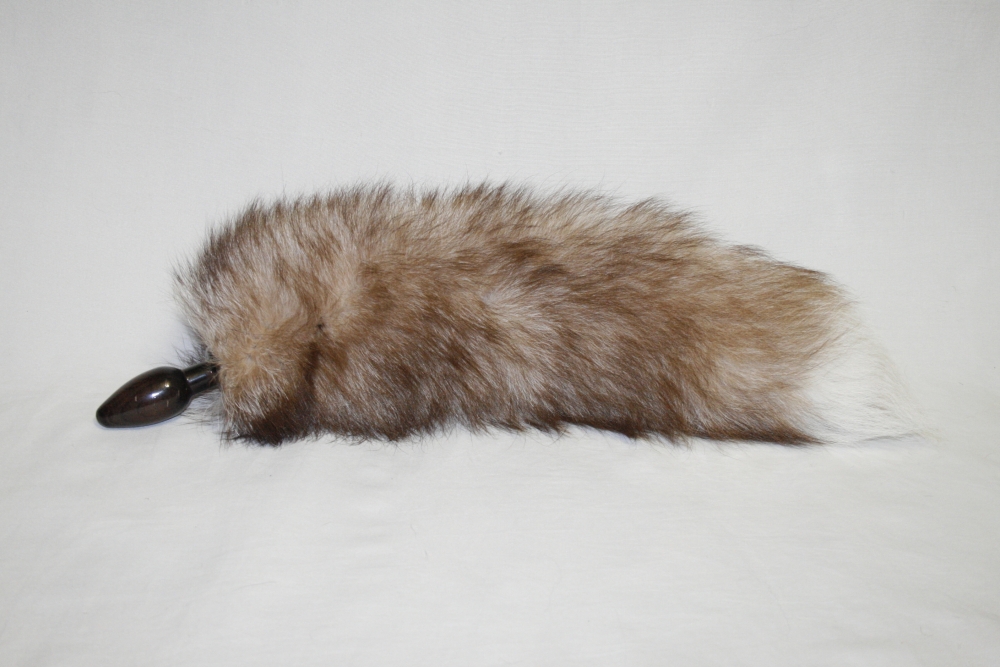 Черная анальная пробка с лисьим хвостом. Выполнена из натурального дерева и покрыта лаком для гладкости.