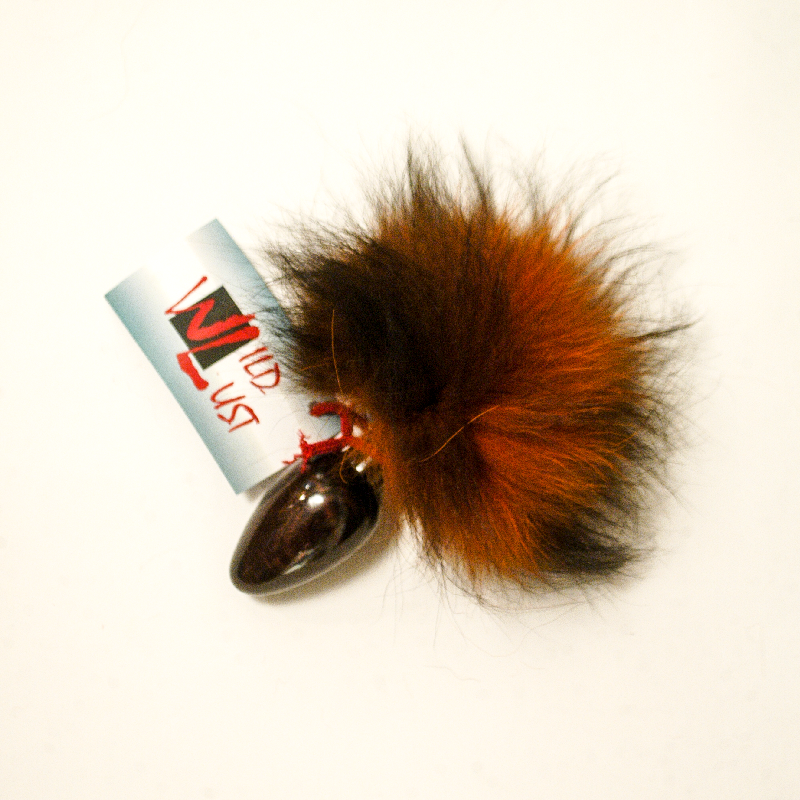 Анальная пробка с оранжево-чёрным заячьим хвостом Wild Lust HT32black/orange (8 см)