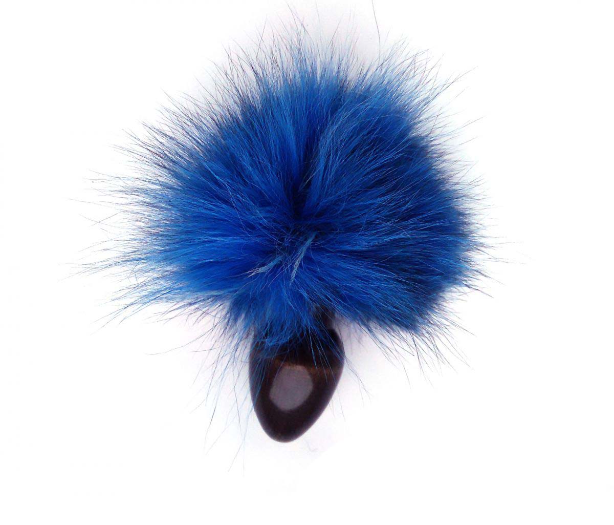Анальная пробка из натурального дерева. В основании пробки закреплен милый заячий хвостик, тонированный в ярко-голубой цвет.