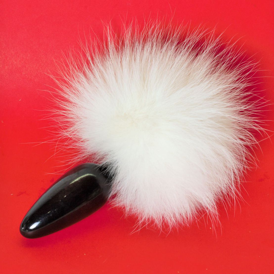 Анальная пробка черного цвета, изготовленная из дерева. Имеет ограничительное основание для безопасного использования. В основании закреплен заячий хвостик. Материалы: дерево, лак, натуральный мех.