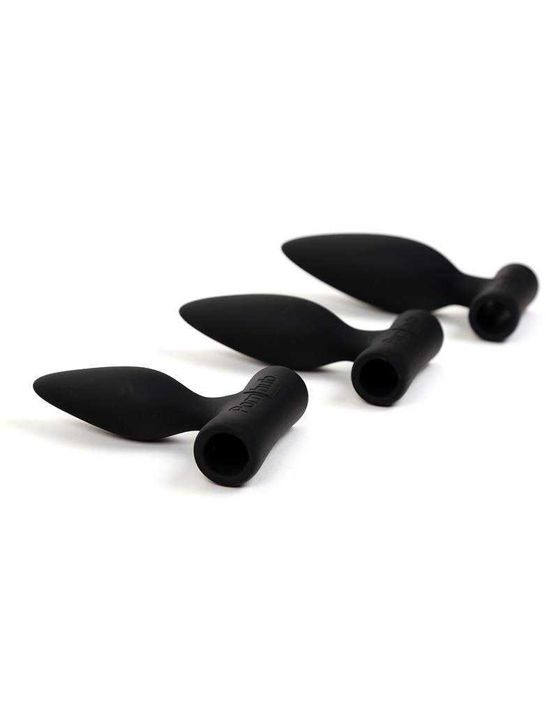 Набор анальных втулок от всемирно известного бренда Pornhub откроет для вас мир анальных наслаждений. В комплект входят три втулки разных размеров для постепенной тренировки мышц ануса и мощная вибропуля, которую можно вставить в основание-кармашек каждой втулки. Наконечник конической формы и покрытие из нежного гипоаллергенного силикона сделают проникновение легким и приятным, а широко основание обеспечит безопасность при использовании. 10 режимов вибрации. Длина большой пробки - 13 см., диаметр - 3,8 см. Длина средней пробки - 11,5 см., диаметр - 3,2 см. Длина средней пробки - 10 см., диаметр - 2,7 см.