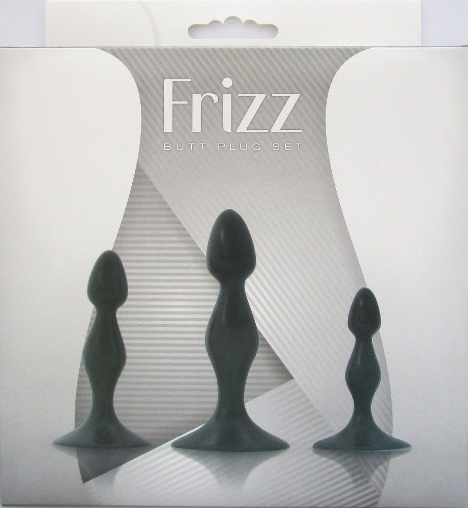 Набор Frizz из 3 фигурных анальных пробок. Длина большой пробки - 16,3 см., диаметр - 3,7 см. Длина средней пробки - 13,7 см., диаметр - 3,2 см. Длина малой пробки - 10,8 см., диаметр - 2,5 см.