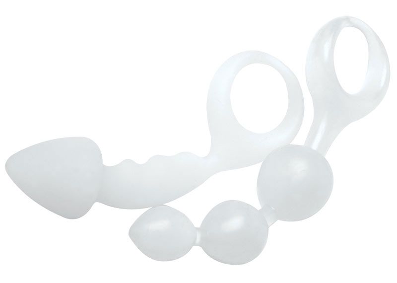 Замечательный набор, который понравится любителям анального секса. Сделайте эффективный старт! 2 разные по текстуре анальные пробки порадуют вас не только своим дизайном, но и функциональностью. Игрушки изготовлены из приятного на ощупь силикона. Материал совершенно не имеет запаха, не содержит вредных для организма веществ, в том числе и фталат. У пробок совершенно гладка и хорошо скользящая поверхность, благодаря чему они подарят исключительно приятные ощущения при проникновении. Она из пробок имеет вид трех шариков на жесткой сцепке, другая напоминает скелет рыбы – такая же головка и углы, имитирующие кости. На конце каждой игрушки есть большое кольцо, благодаря которому пробка легко извлекается из ануса. Длина пробки с 3 звеньями - 15,5 см., диаметр - 3 см. Длина пробки с головкой-капелькой - 14 см., диаметр - 3 см. Рабочая длина каждой пробки - 10 см.