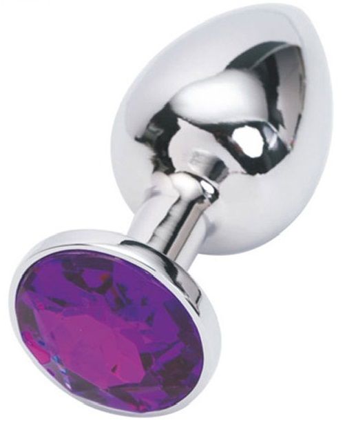 Серебряная металлическая анальная пробка с фиолетовым стразиком
