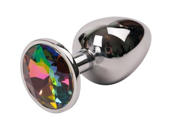 Серебряная металлическая анальная пробка с радужным стразиком