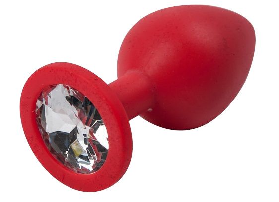 Красная силиконовая анальная пробка с прозрачным стразом 4sexdreaM 47126 (8,2 см)