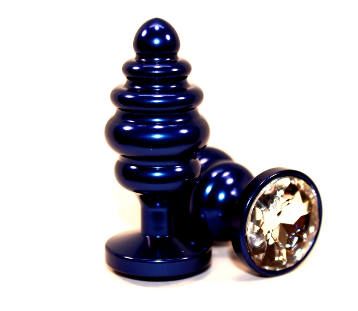 Синяя рифлёная пробка с прозрачным кристаллом 4sexdreaM 47428-4 (7,3 см)