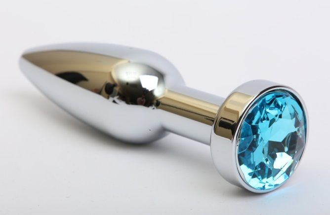 Удлинённая серебристая пробка с нежно-голубым кристаллом 4sexdreaM 47437-1 (11,2 см)