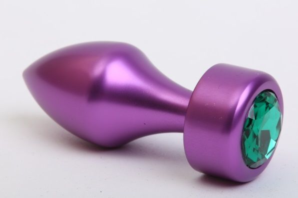 Фиолетовая анальная пробка с широким основанием и зелёным кристаллом 4sexdreaM 47445-6 (7,8 см)