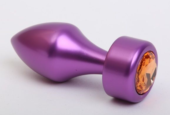 Фиолетовая анальная пробка с широким основанием и жёлтым кристаллом 4sexdreaM 47445-9 (7,8 см)
