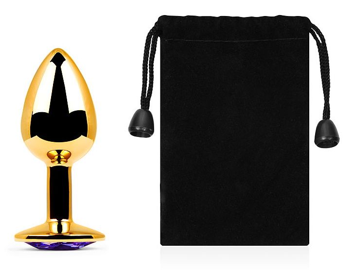 Золотистая анальная пробка с фиолетовым стразом Anal Jewelry Plug GS-15 (7,2 см)