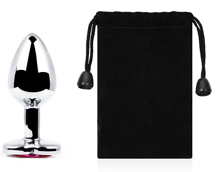 Серебристая анальная пробка с розовым кристаллом-сердечком Anal Jewelry Plug SCH-02 (7 см)
