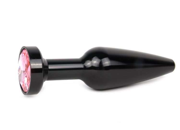 Удлиненная коническая гладкая чёрная анальная втулка с розовым кристаллом