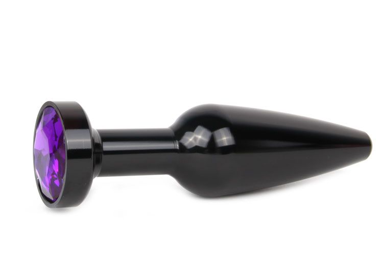Удлиненная коническая гладкая чёрная анальная втулка с кристаллом фиолетового цвета Anal Jewelry Plug XBCK-04 (11,3 см)