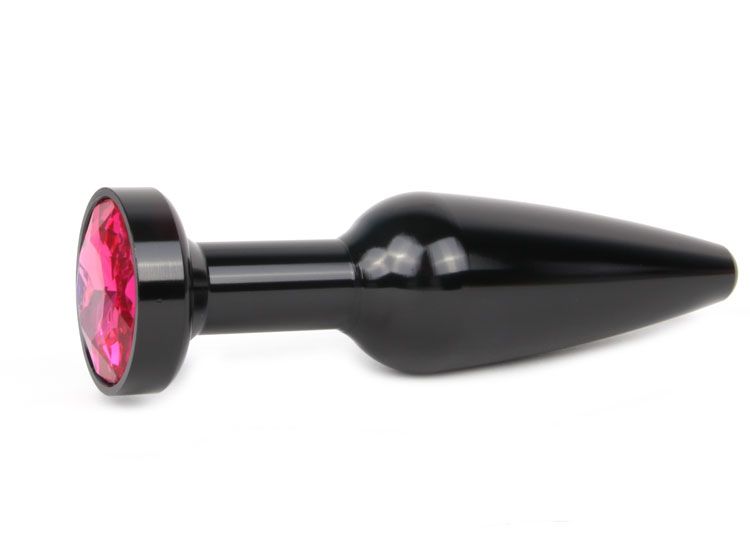 Удлиненная коническая гладкая чёрная анальная втулка с малиновым кристаллом