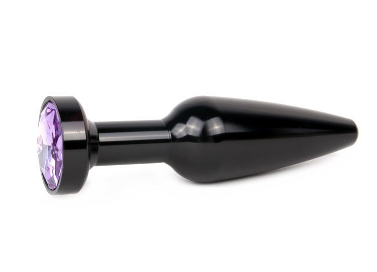 Удлиненная коническая гладкая чёрная анальная втулка с сиреневым кристаллом