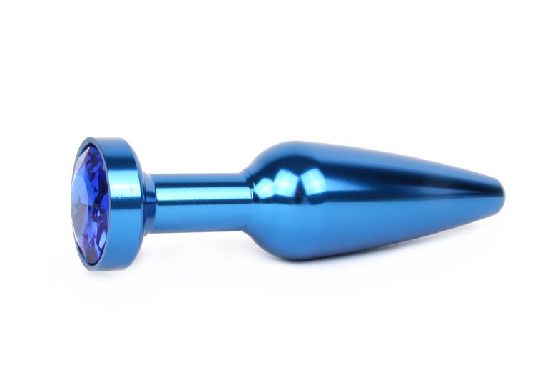 Удлиненная коническая гладкая синяя анальная втулка с синим кристаллом