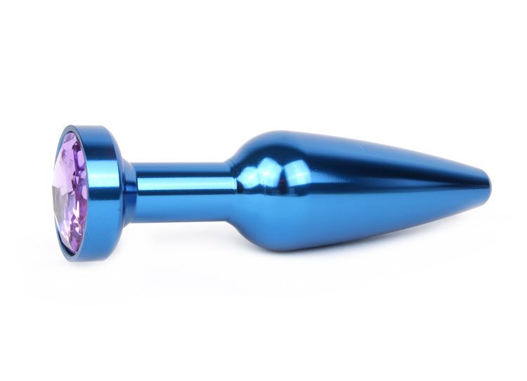 Удлиненная коническая гладкая синяя анальная втулка с сиреневым кристаллом