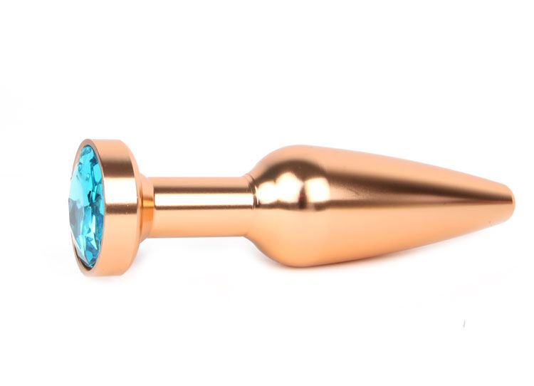 Удлиненная коническая гладкая золотистая анальная втулка с голубым кристаллом