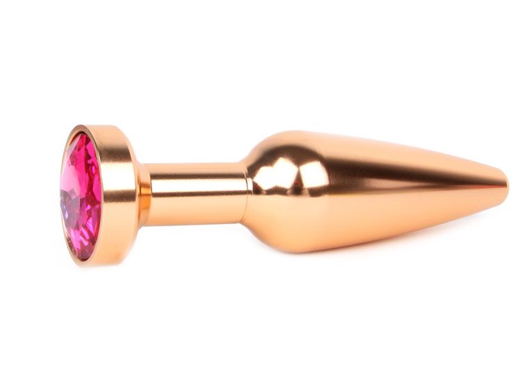 Удлиненная коническая гладкая золотистая анальная втулка с малиновым кристаллом