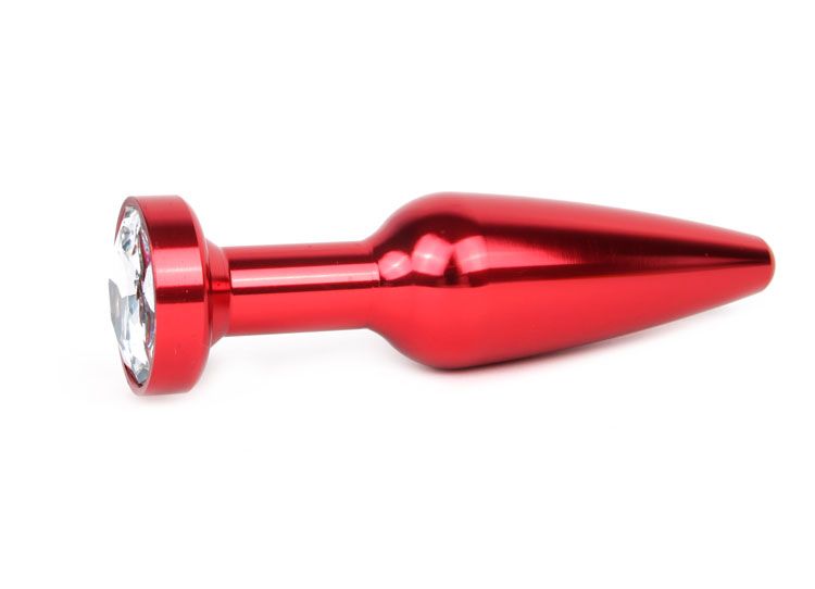 Удлиненная коническая гладкая красная анальная втулка с прозрачным кристаллом