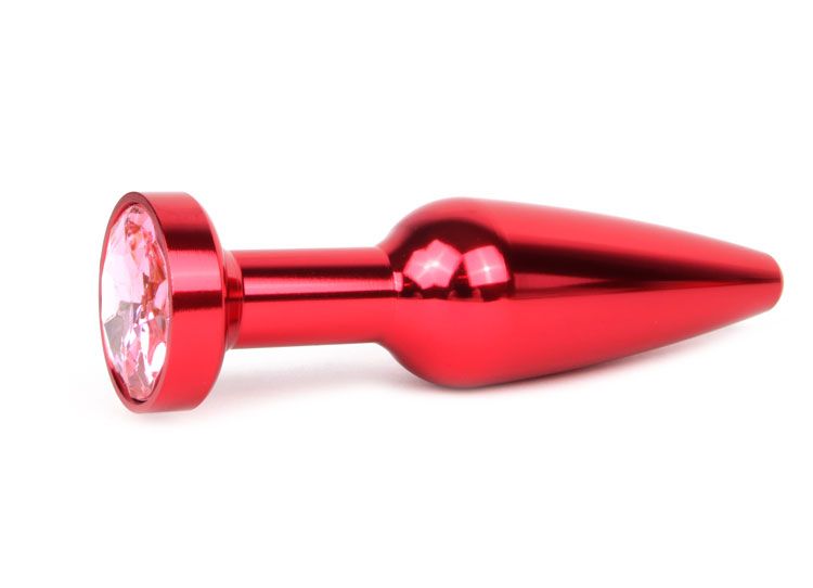 Удлиненная коническая гладкая красная анальная втулка с розовым кристаллом