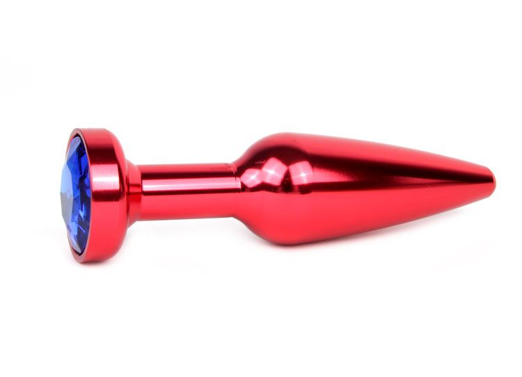 Удлиненная коническая гладкая красная анальная втулка с синим кристаллом
