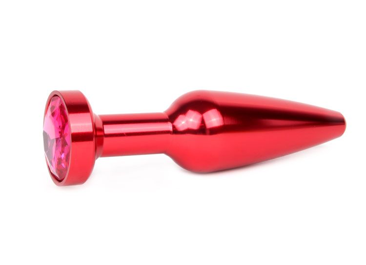 Удлиненная коническая гладкая красная анальная втулка с малиновым кристаллом