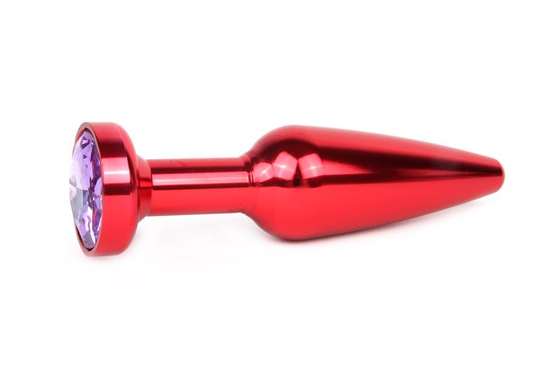 Удлиненная коническая гладкая красная анальная втулка с сиреневым кристаллом